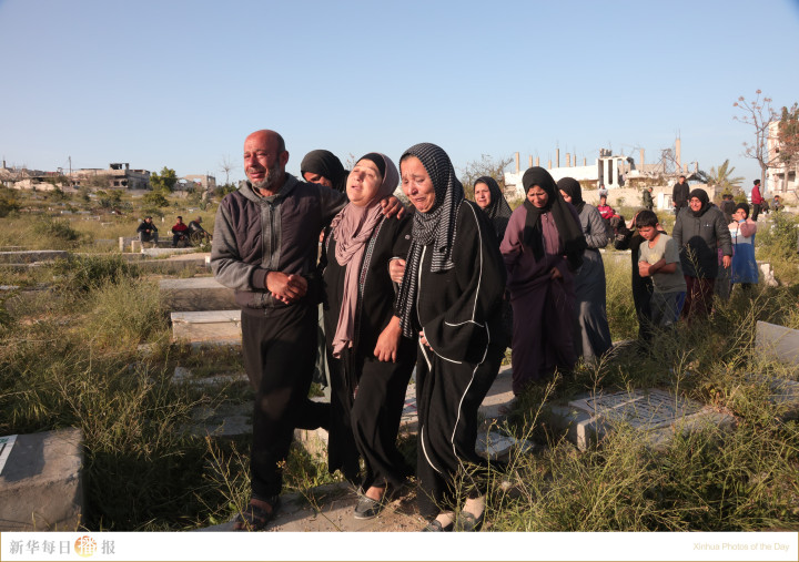 3月24日,在加沙地带北部杰巴利耶难民营,当地民众为在以军袭击中遇难的巴勒斯坦记者送葬。巴勒斯坦消息人士称,两名巴勒斯坦记者当日在以军对加沙地带的袭击中遇害。